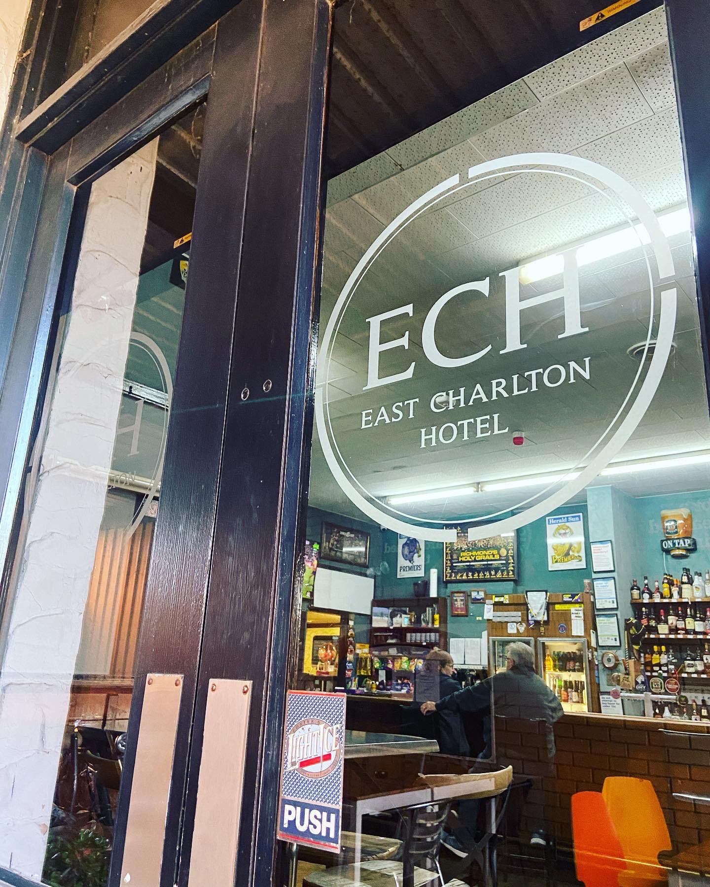 Frosted logos forĀ East Charlton Hotel | New owners Greg and Leanne | Charlton